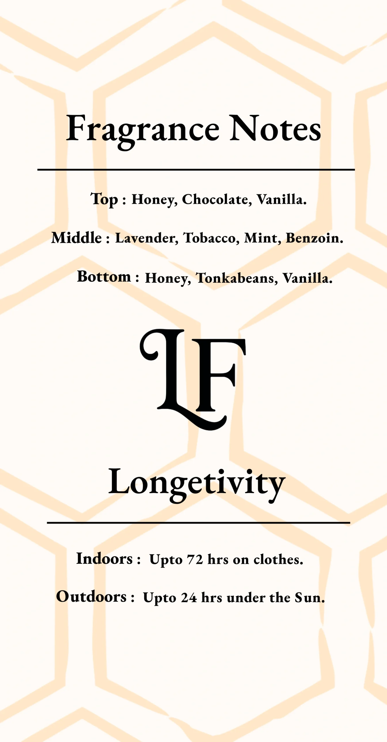 Base Notes – Honey, Tonka Beans, Vanilla